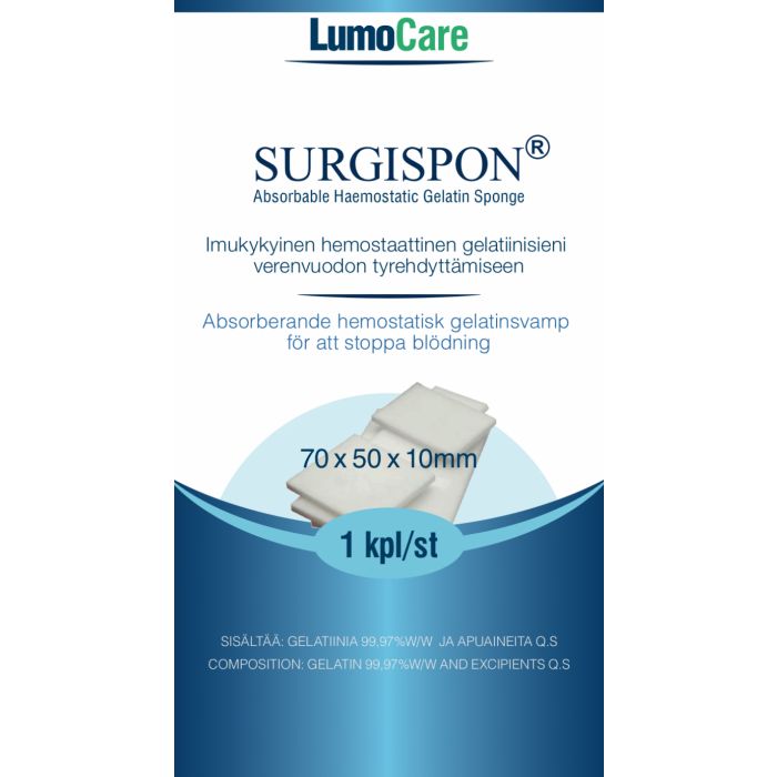 Lumocare Surgispon imukykyinen hemostaattinen gelatiinisieni 70x50x10mm 1 kpl